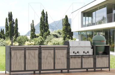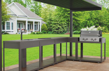 Хотите обустроить зону для готовки на свежем воздухе? Присмотритесь к встраиваемым системам. Их монтируют прямо в столешницу, экономя место и создавая аккуратный вид. Обычно комплекс включает варочную панель с решёткой и шампурами, а также боковые столешницы. Многие модели дополняют выдвижными ящиками и полками.