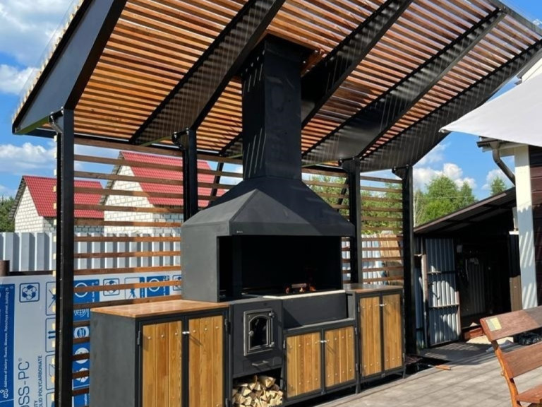 Мангальная зона с крышей - это удобное решение для комфортного приготовления блюд на свежем воздухе в любое время года.