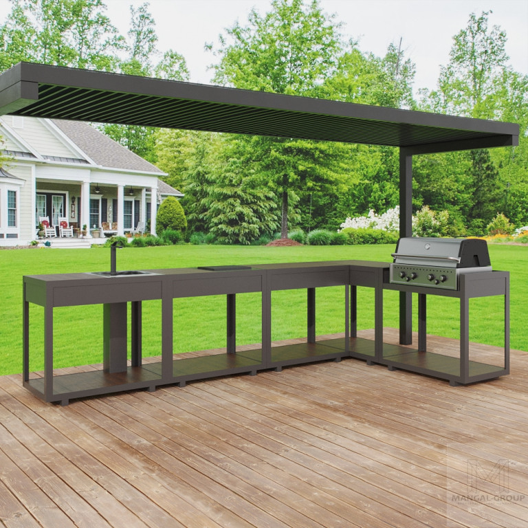 Выбирайте формат, который подходит вашему образу жизни. Открытая площадка с навесом идеальна для лета. А капитальный закрытый комплекс с остеклением или панорамными окнами позволит наслаждаться приготовлением пищи в любую погоду.