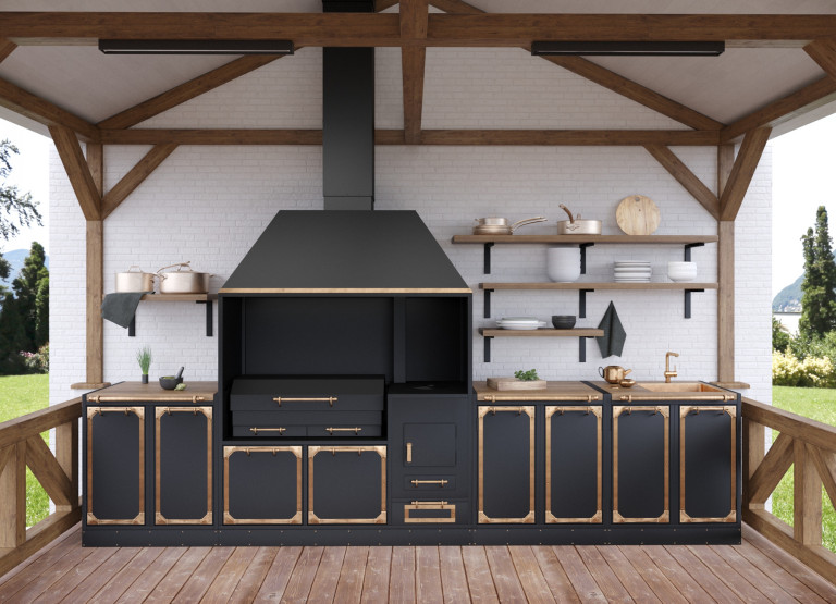 Для тех, кто любит копчености, доступна опция барбекю комплекса с коптильней из металла. Металл обеспечивает быстрый нагрев и равномерное распределение тепла, что критически важно для качественного копчения. Такой функционал превращает ваш участок в полноценный гастрономический центр. Готовый комплекс может быть установлен как на открытой террасе, так и в помещении.